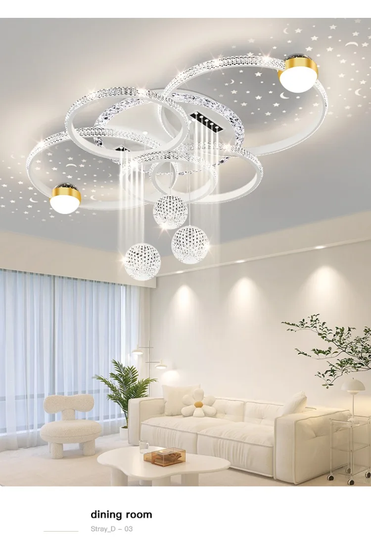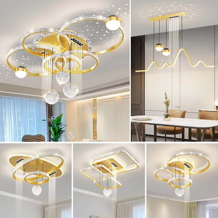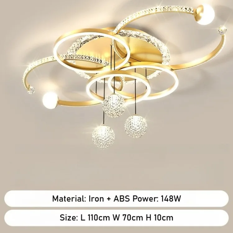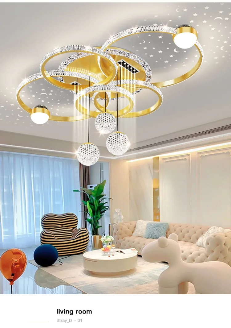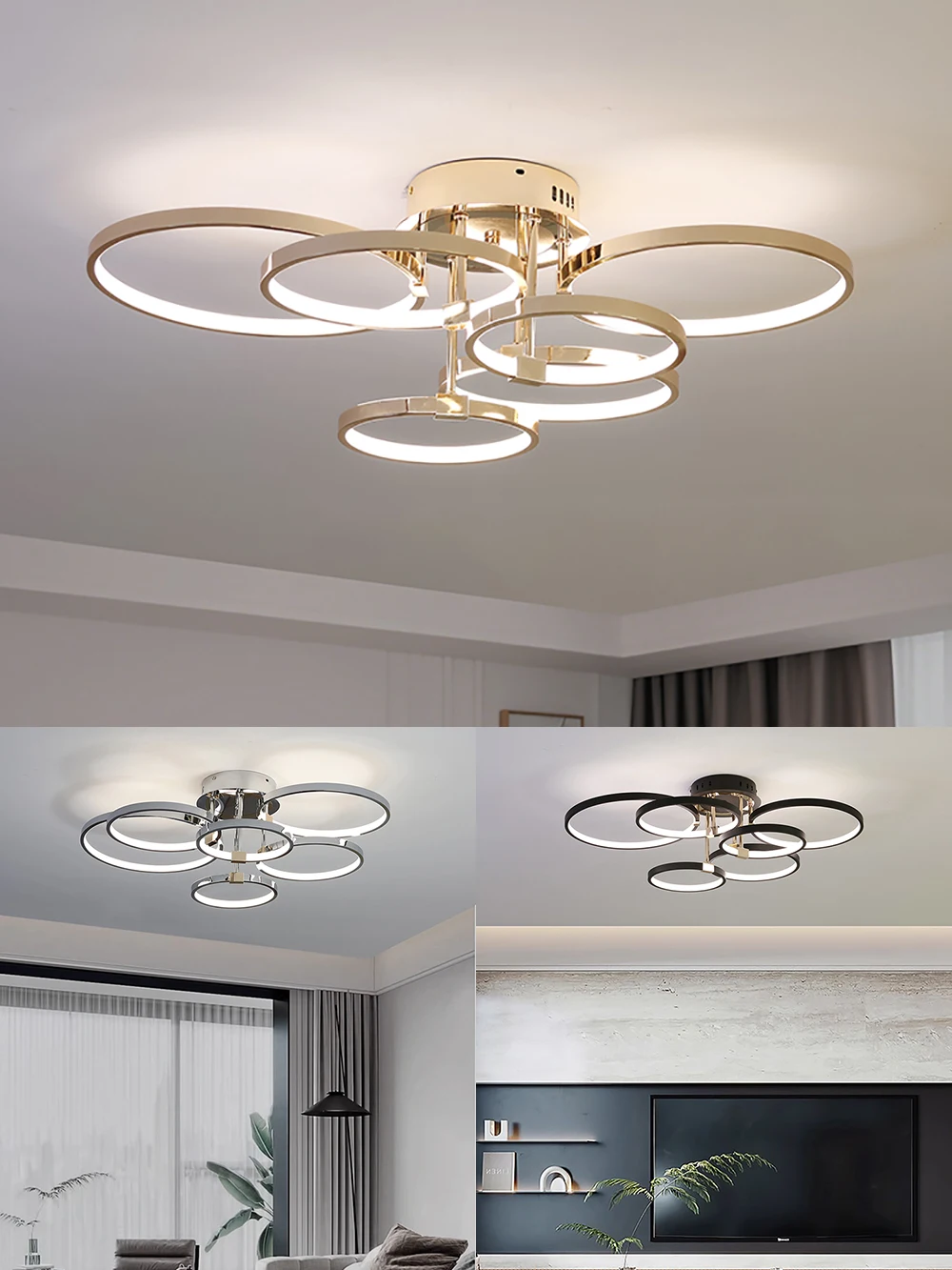 This modern LED chandelier ceiling light combines elegant design with smart lighting control. Available in gold, chrome, or black finishes, it features dimmable lighting and remote control operation, making it ideal for living rooms, bedrooms, and contemporary interiors.